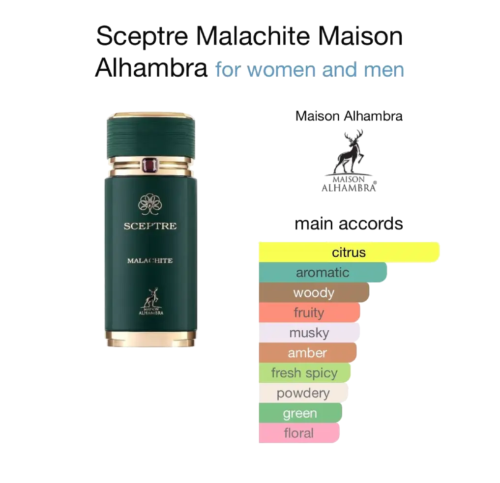 Ponadto, marka Maison Alhambra słynie z tworzenia jakościowych alternatyw dla prestiżowych zapachów. Dlatego też Sceptre Malachite stanowi idealny wybór dla koneserów orientalnych kompozycji o intensywnym charakterze.